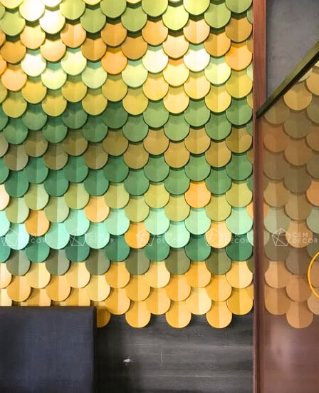 Ứng dụng gạch 3D nghệ thuật tại các bức tường trung tâm giúp không gian nổi bật. Các họa tiết như sóng nước, vảy cá hay hoa văn nghệ thuật tạo nên phong cách riêng.
