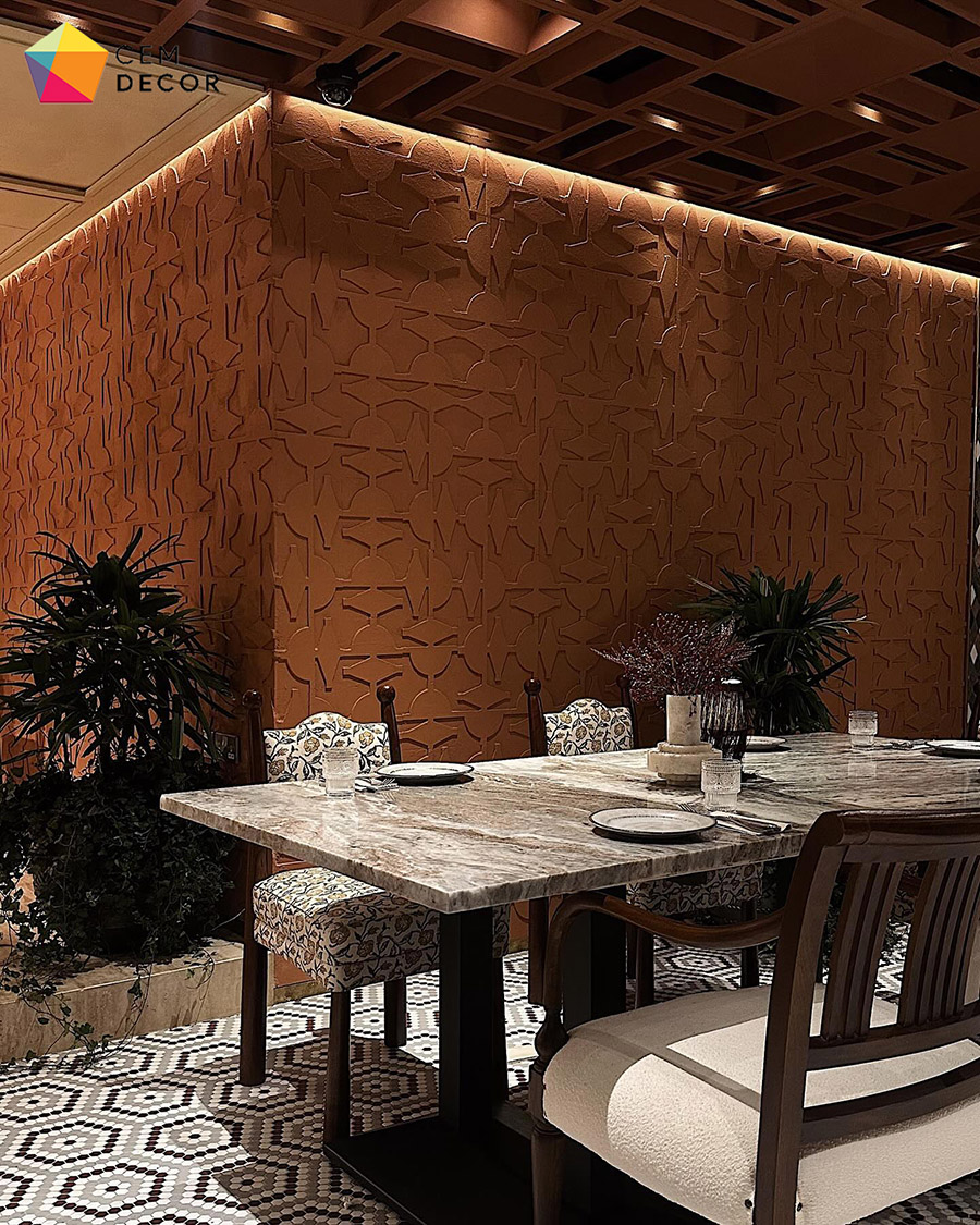 Một ưu điểm nổi bật khác của mẫu gạch bê tông trang trí ANM06298 chính là khả năng ứng dụng linh hoạt trong nhiều dạng không gian khác nhau – từ phòng ngủ, phòng khách, sảnh khách sạn, khu vực nhà hàng, quầy lễ tân, vách tiểu cảnh ngoài trời cho đến các mảng nhấn trong căn hộ cao cấp.