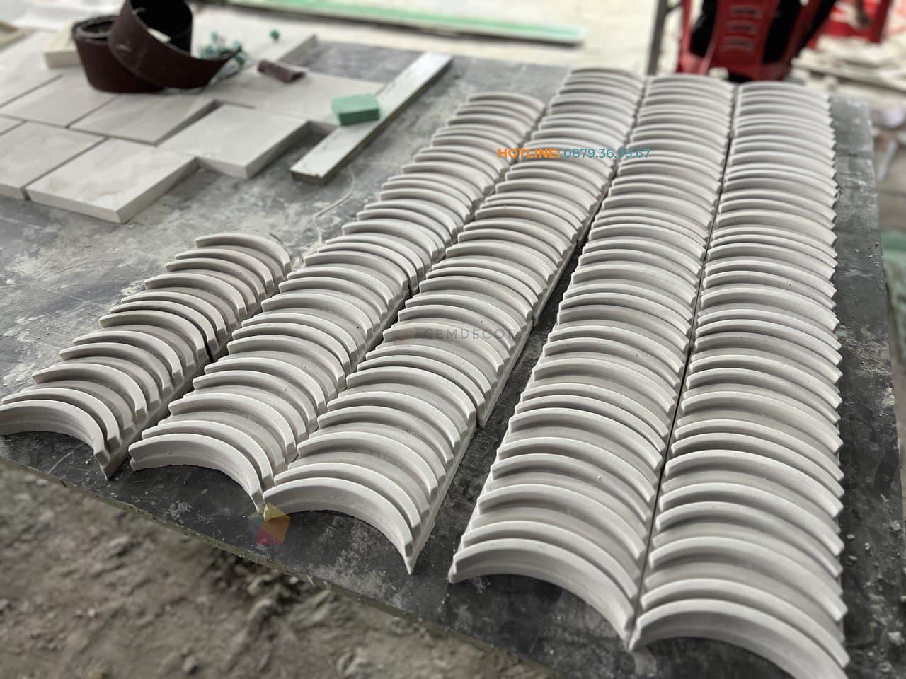 Người thợ sử dụng các khuôn mẫu chuyên dụng với độ chính xác cao. Mỗi đường nét, góc cạnh đều được chăm chút để đạt độ sắc sảo. Việc tạo hình thủ công giúp viên gạch có sự đồng nhất nhưng không đánh mất cảm giác tự nhiên của bê tông.